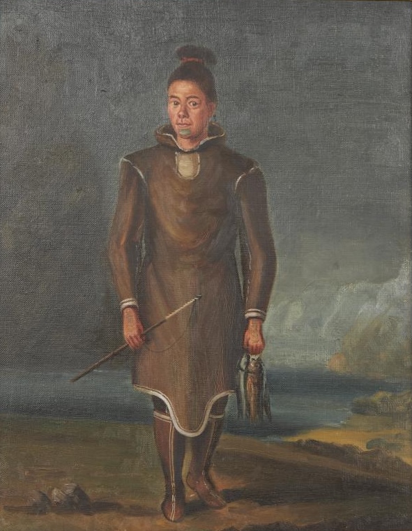 På baksiden av maleriet kan vi lese at dette er «den grønlandske, gudfryktige og dydige jomfru Maria», som i 1746 reiste fra Grønland til København fra Paamiut med Pastor Arnoldus von Westen Sylow og deretter videre til Osterøy utenfor Bergen. På veien ble hun portrettert av maleren Mathias Blumenthal. Maleren iscenesatte Maria i sitt tradisjonelle liv som inuitt, i dramatiske naturlige omgivelser med fjell og fangstliv. Hun fulgte med Sylow til Osterøy for at hun skulle bistå med oversettelse av bibelen til Grønlandsk. Hennes retur ble forsinket på grunn av kopper-epidemien, og om vinteren ble hun syk og døde i 1748 bare noen måneder før hun skulle reise hjem igjen.